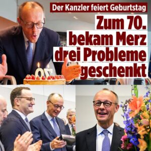 Mit diesem – noch warmen – Kuchen überraschten Mitarbeiter des Kanzleramts Friedrich Merz gestern zu seinem 70. Geburtstag Berlin – Zwei Kerzen auf…