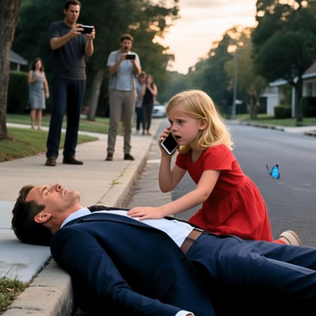 Ein kleines Mädchen in einem roten Kleid, das Schmetterlingen nachjagte, blieb stehen, als es den dumpfen Aufprall hörte. Sie eilte zu ihm, legte ihre kleine Hand auf seine Brust und flüsterte: „Er atmet.“ Dann griff sie mit zitternder Hand nach ihrem Handy und wählte den Notruf. Das schnelle Denken dieses kleinen Mädchens rettete ihm das Leben.