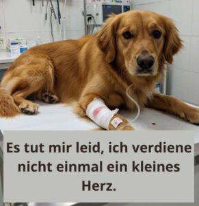 Draußen regnete es leise, und der Geruch nach Desinfektionsmittel hing in der Luft. Eine Tierärztin stand daneben, seufzte und strich ihm sanft über den Kopf.